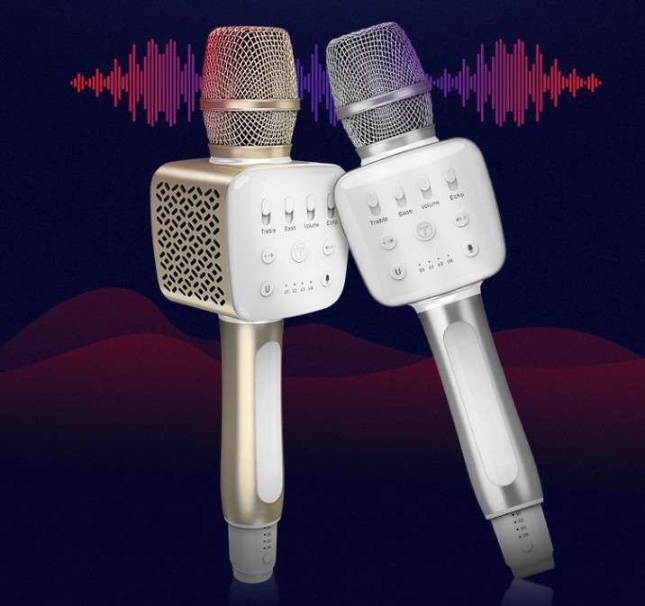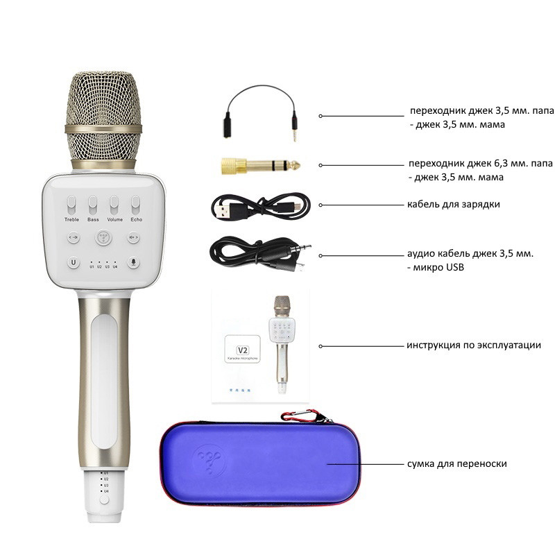 Микрофон Tuxun V2 - это лучшая модель 2020 года по функционалу и качеству звука. Разработчики улучшили качество звучания по сравнению с V1, а также добавили разъем под microSD. Этот уникальный портативный караоке микрофон будет радовать Вас прекрасным звучанием, потрясающем дизайном и новыми функциями!